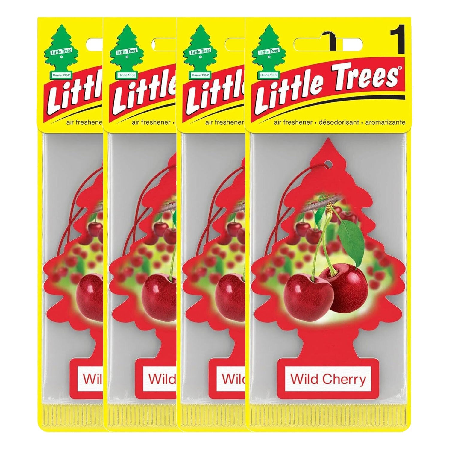 Little Trees Hanging Car Freshener Cardboard Paper For Home Car Office, Wild Cherry, 4 Pack