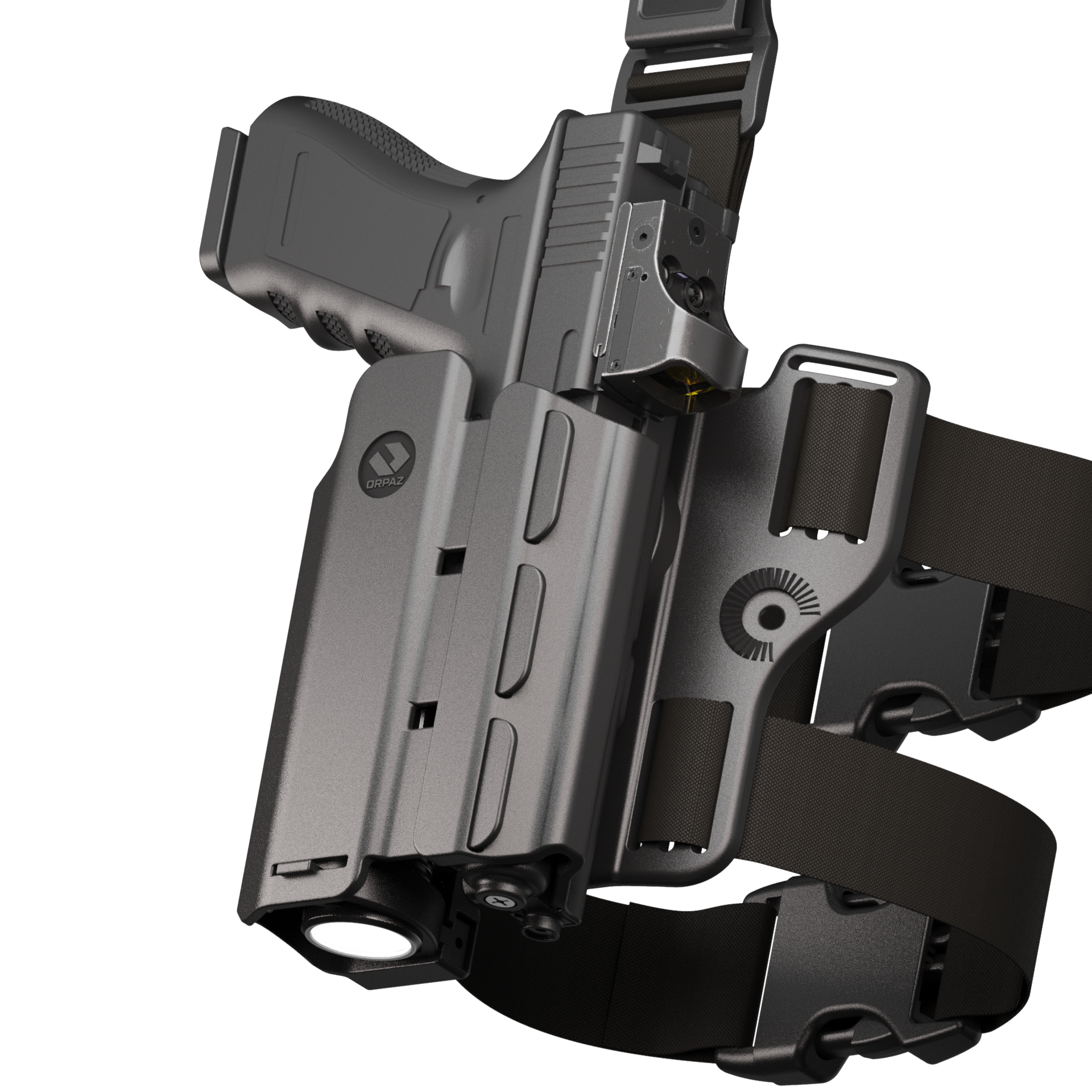 Orpaz G19 Light Bearing Holster Compatible with Glock 19 Holster with Light/Laser/Sight/Optics (Large Pistol Lights, Drop-Leg Attachment)