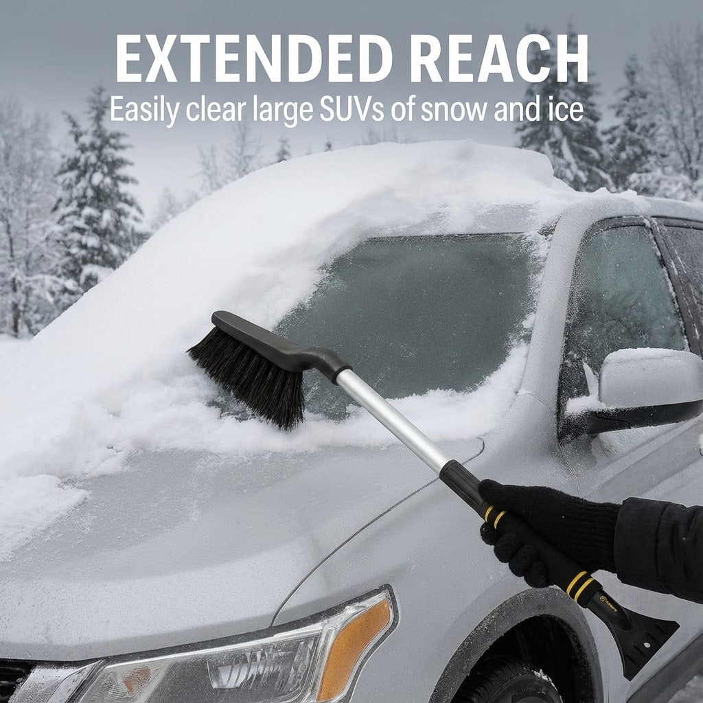 Highlights: EXTENDABLE 22"-30" REACH: Adjustable handle extends from 22 inches to 30 inches, making it easy to clear snow and ice from large vehicles, SUVs, trucks, and windshields. TWIST-LOCK ADJUSTABLE...