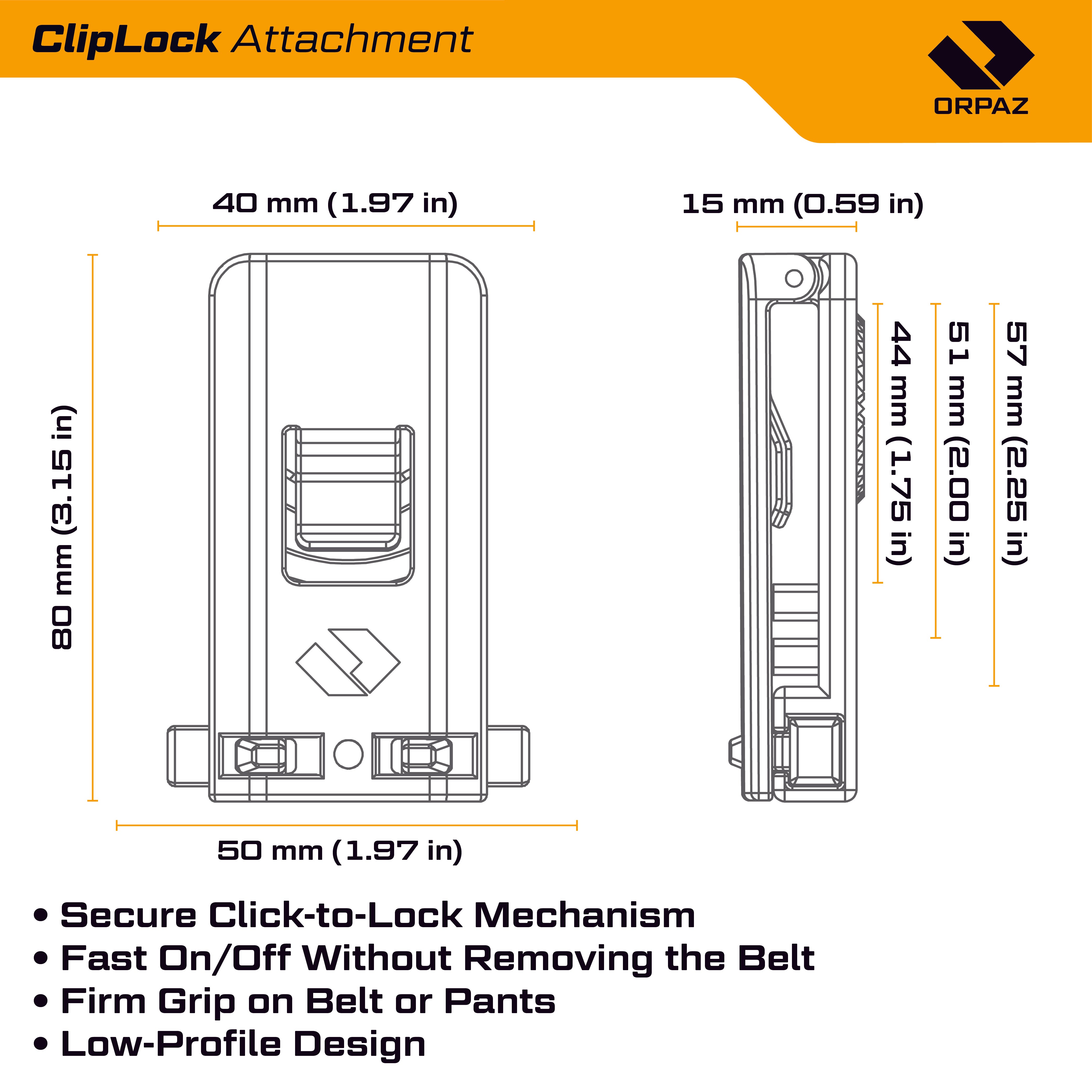 Orpaz ClipLock (50mm) Belt Loop Attachment – Secure Quick-Release Holster Mount for Duty Belts – Adjustable Low-Profile Tactical Belt Attachment – Fits 1.75", 2", 2.25" Belts