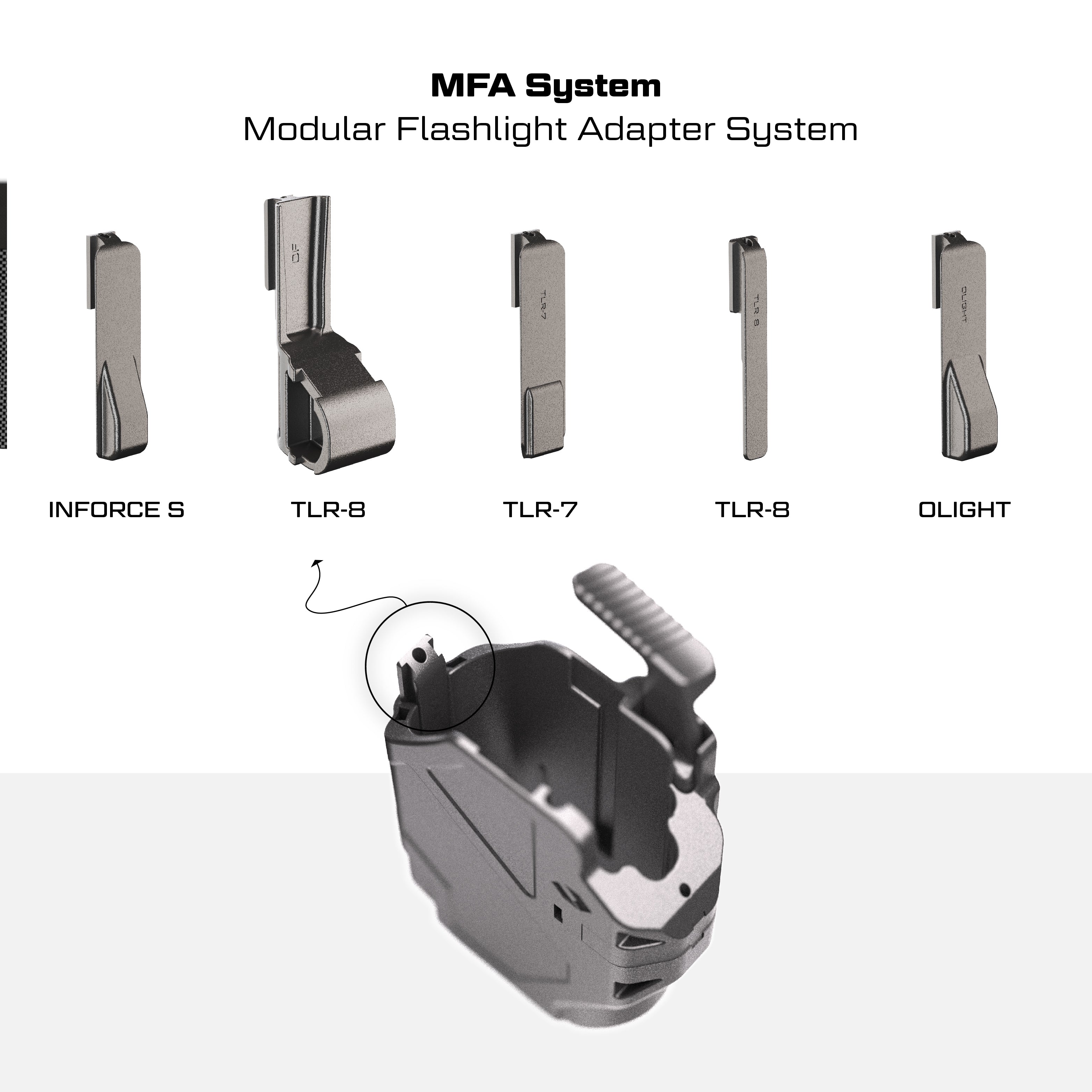 Highlights: LIGHT BEARING DUTY HOLSTER, featuring our unique Orpaz MFA (Modular Flashlight Adapter) system that allows you to customize the fit for multiple flashlights or even running without one, ensuring...