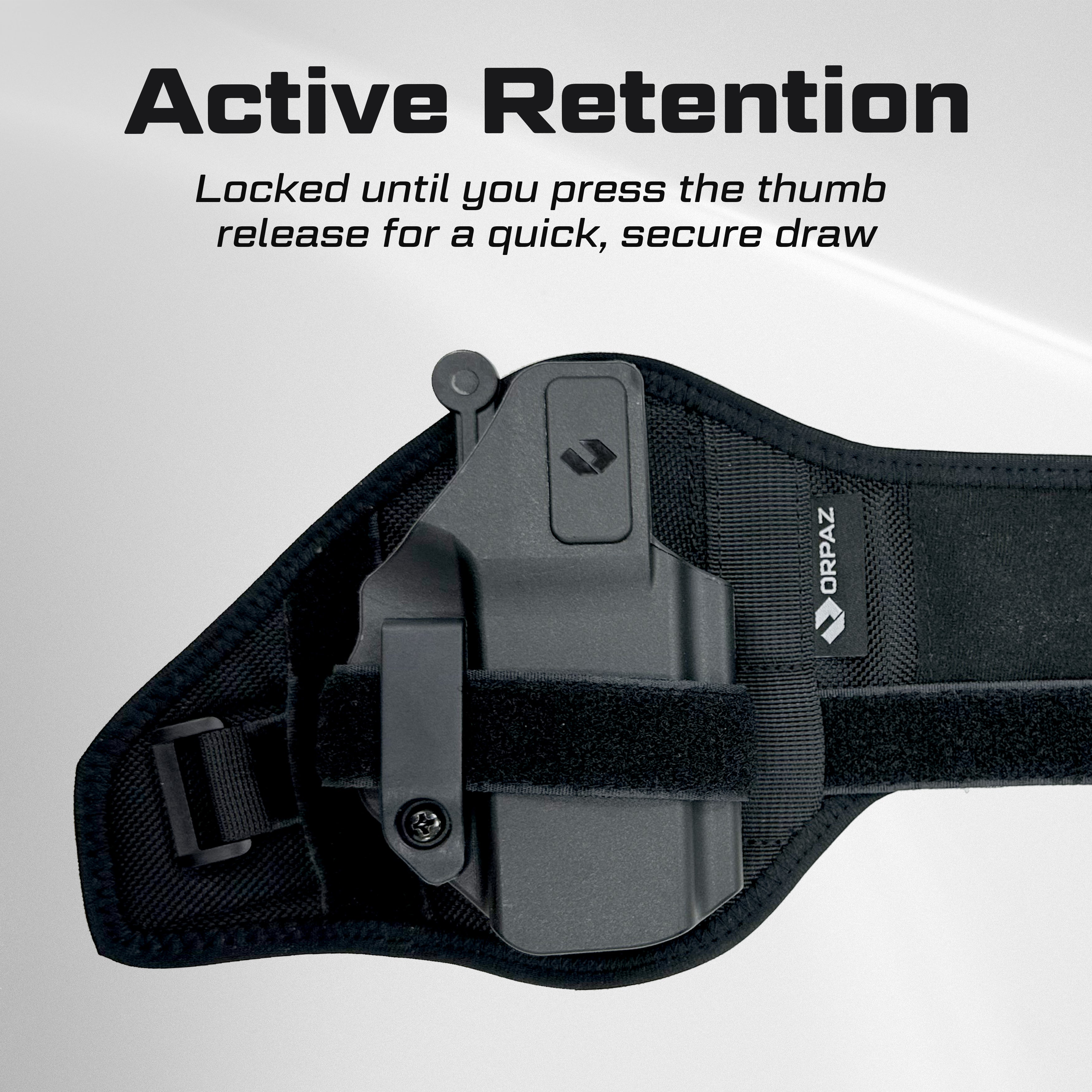 Highlights: Thumb Release Active Retention: Integrated thumb-release button keeps your firearm locked in place until you need it; ergonomic design allows for natural, rapid draw using the side of your...