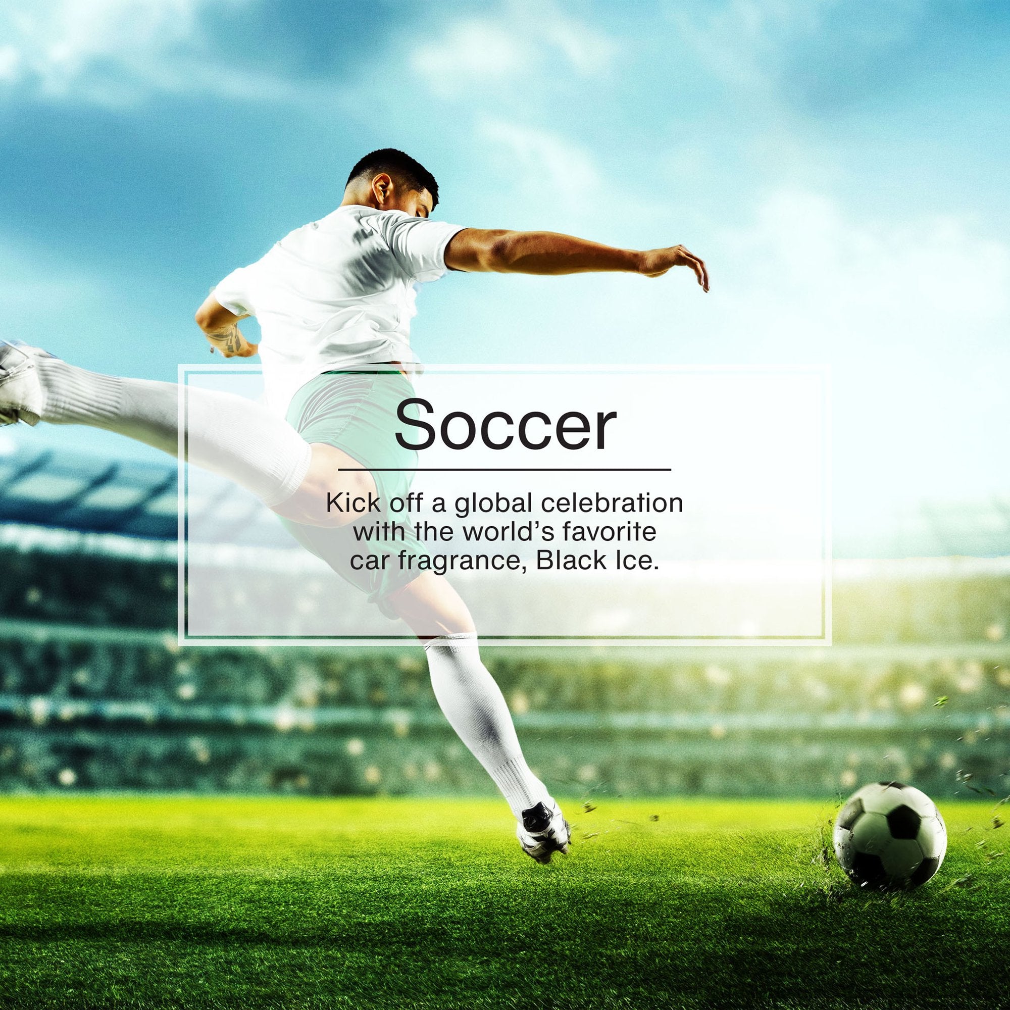 Highlights: Soccer Design Air Freshener: Features a fun soccer-themed paper design with the popular Black Ice fragrance. Black Ice Scent: A fresh, bold fragrance that keeps cars, homes, and offices...