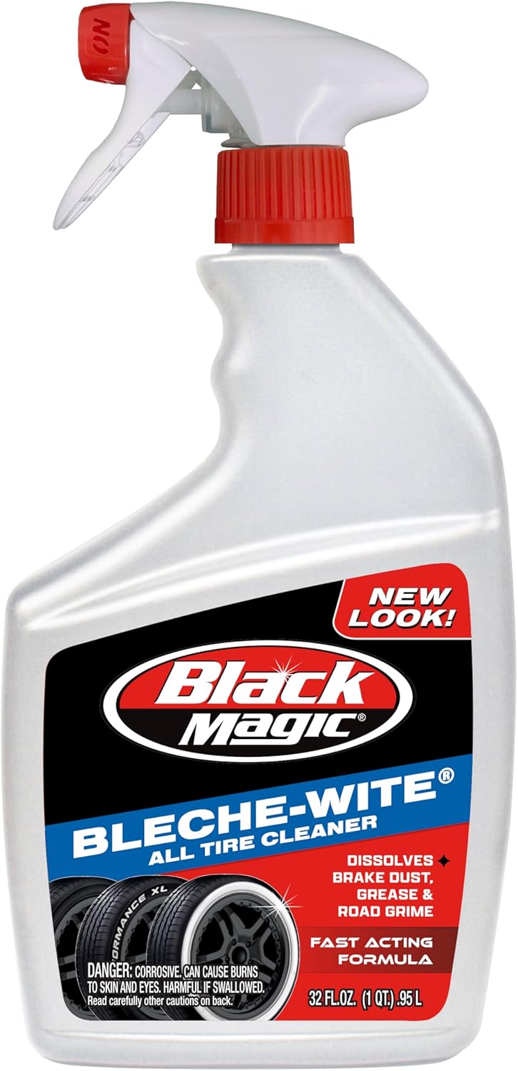 Black Magic Bleche-Wite Tire Cleaner Spray, Fast-Acting Formula Removes Brake Dust & Grime, 32 Oz