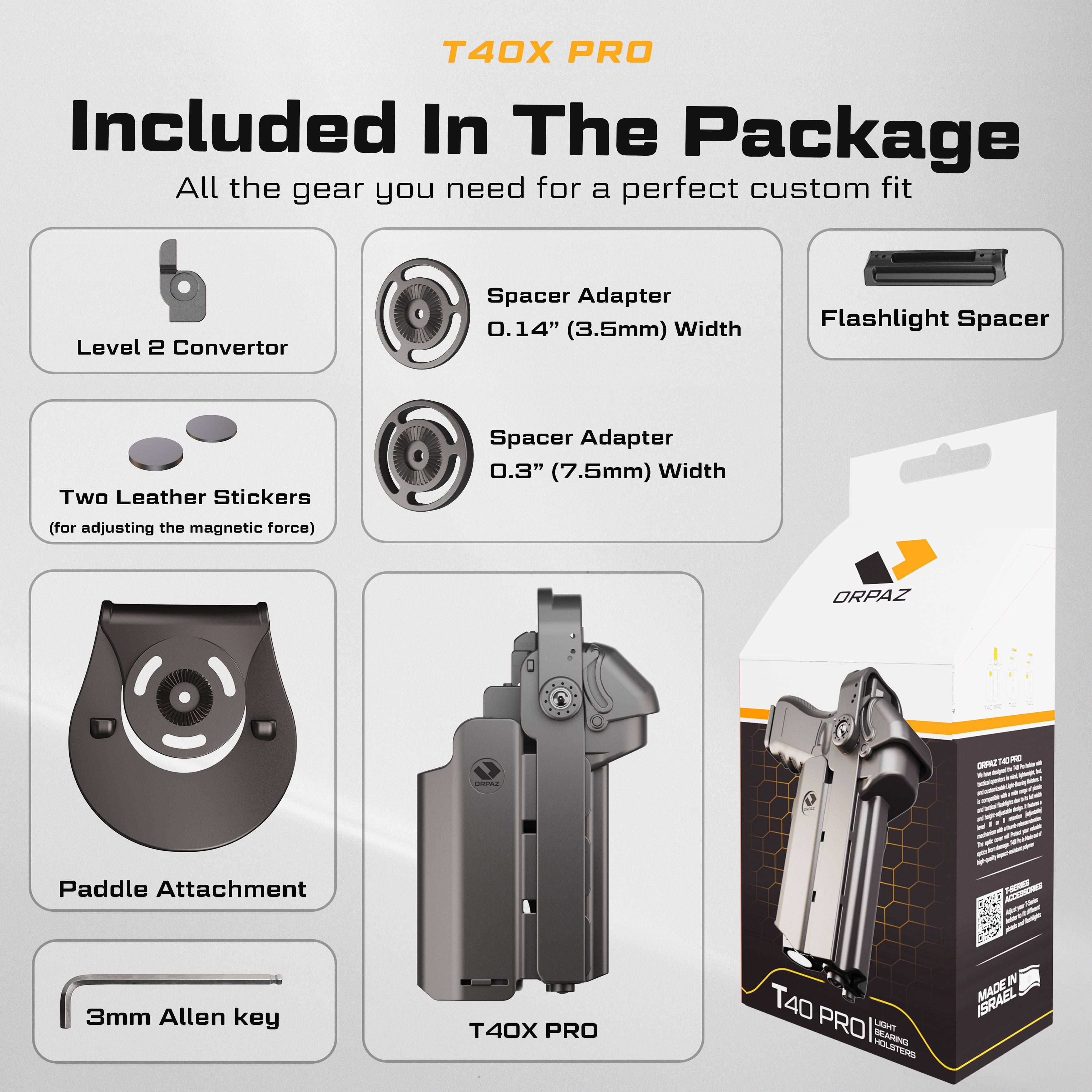 Highlights: Universal Fit for Pistol & Light: Width and height adjustable to accommodate most pistols and tactical lights—T40X fits large lights (TLR-1, X300, PL-Pro, etc.) Check compatibility chart before purchase....