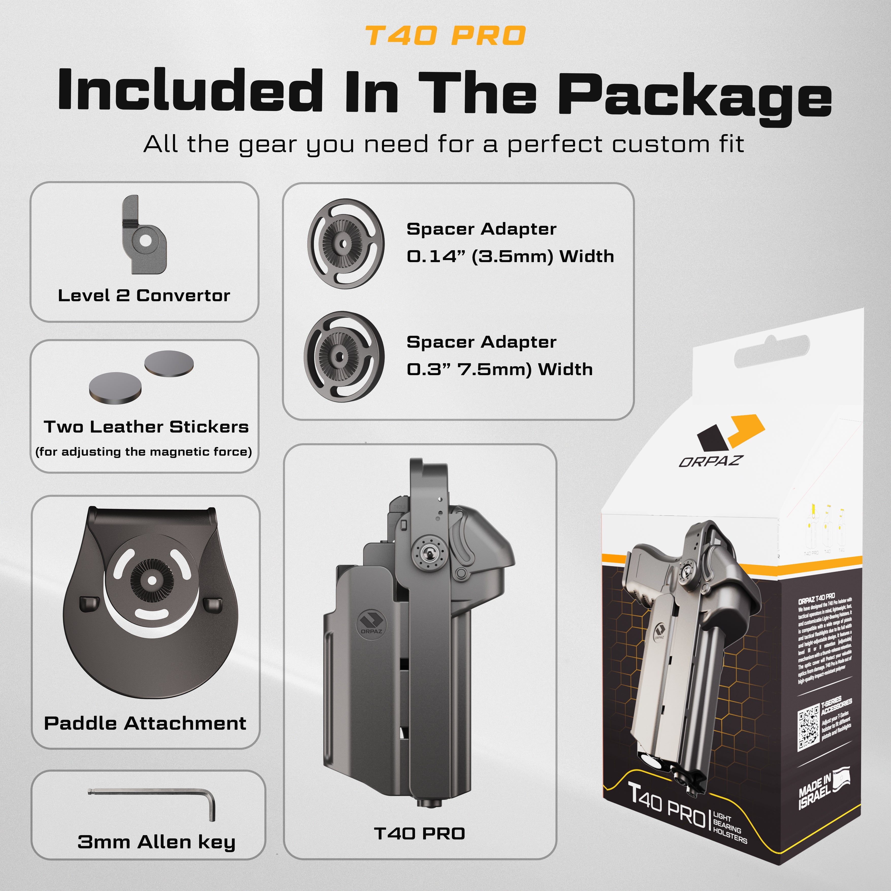 Highlights: Universal Fit for Pistol & Light: Width and height adjustable to accommodate most pistols and tactical lights—T40X fits large lights (TLR-1, X300, PL-Pro, etc.) Check compatibility chart before purchase....