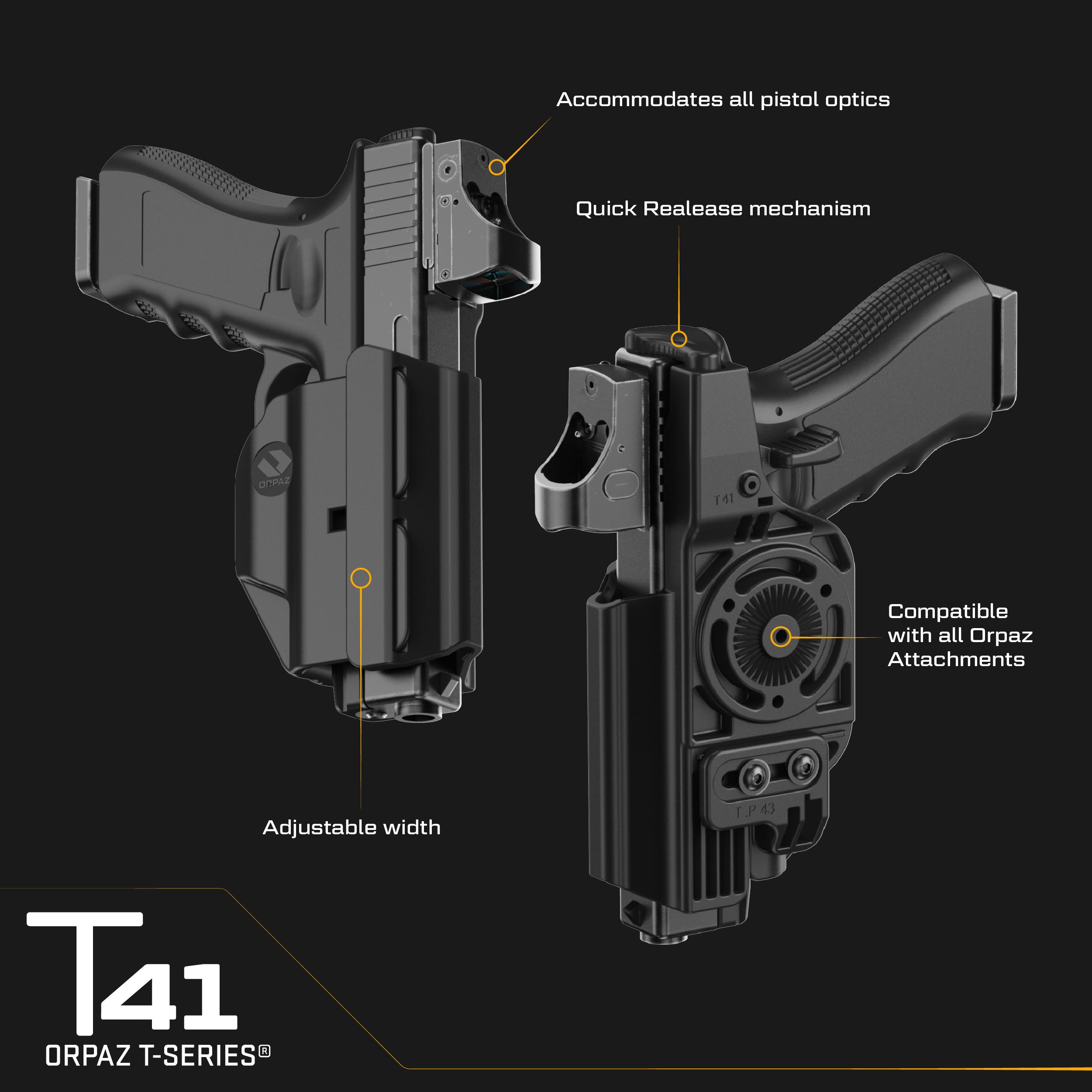 ORPAZ T41 Universal Adjustable Holster, Thumb Release Retention, Optics Ready OWB Polymer Holster, Made in Israel Drop Leg