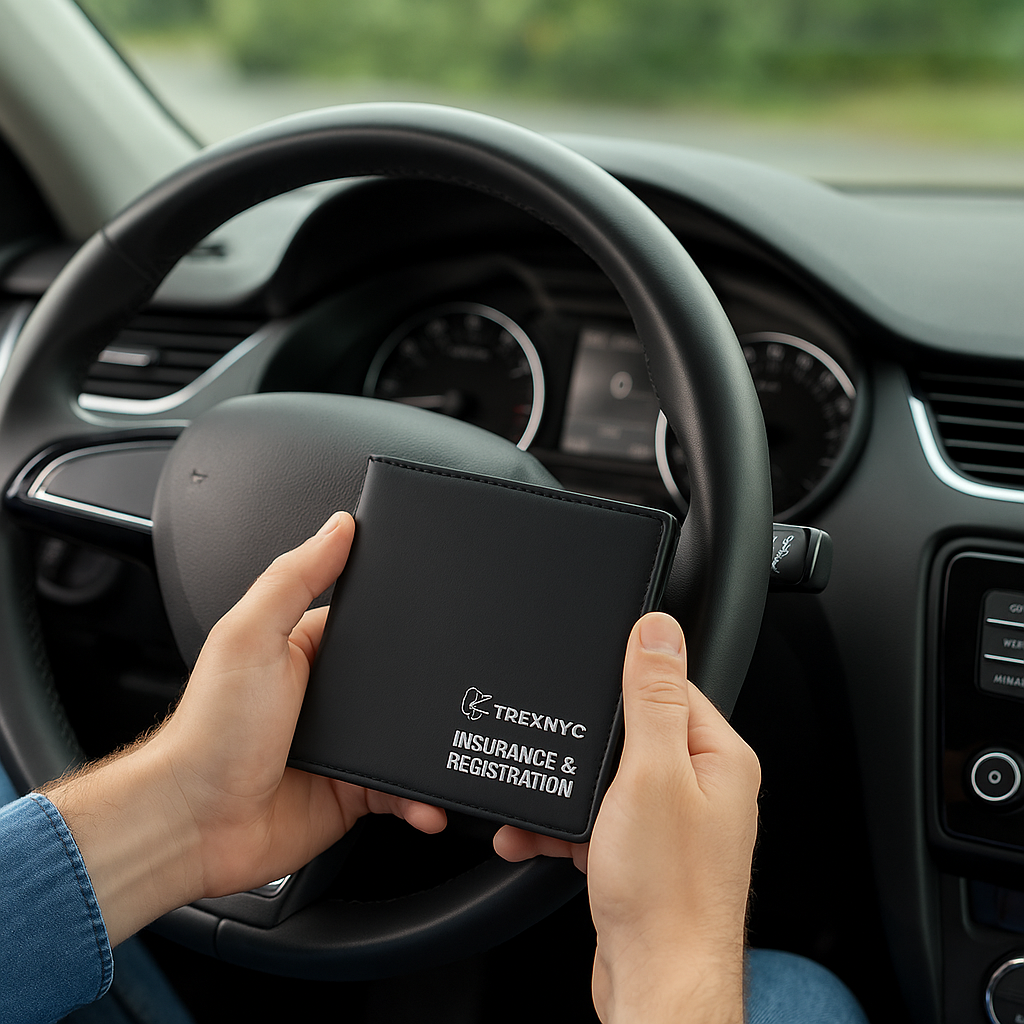 TrexNYC Car Registration & Insurance Card Holder Wallet – Vehicle Document Holder for Car Glove Box Organizer