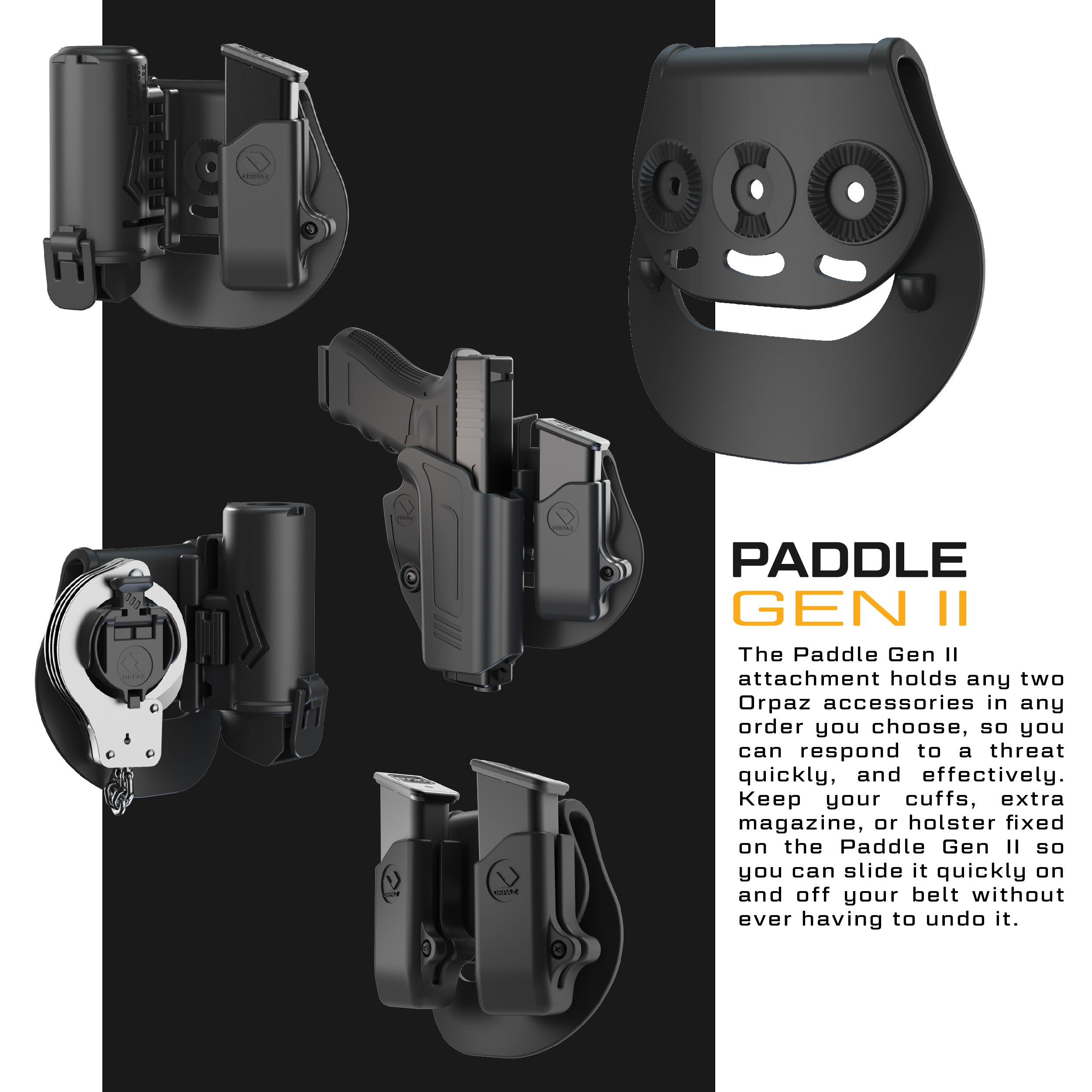 Highlights: Fits: Glock 17, 19, 22, 23, 25, 26, 27, 28, 31, 32, 33, 34, 35, 37, 38 and 39 Paddle attachment has two latches that securely affixed to your...