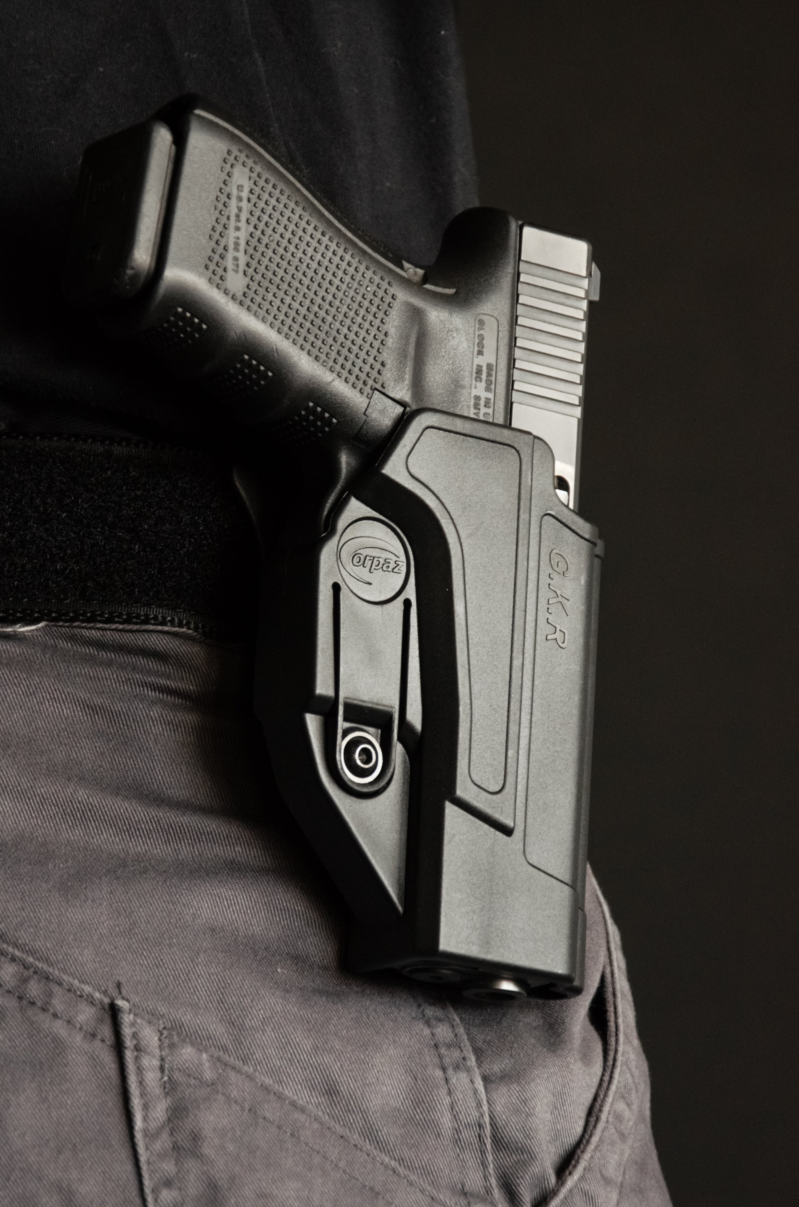 Highlights: Fits: Glock 17, 19, 22, 23, 25, 26, 27, 28, 31, 32, 33, 34, 35, 38 and 39 Unique Multi-Purpose Holster that gives you the option of adding OWB...