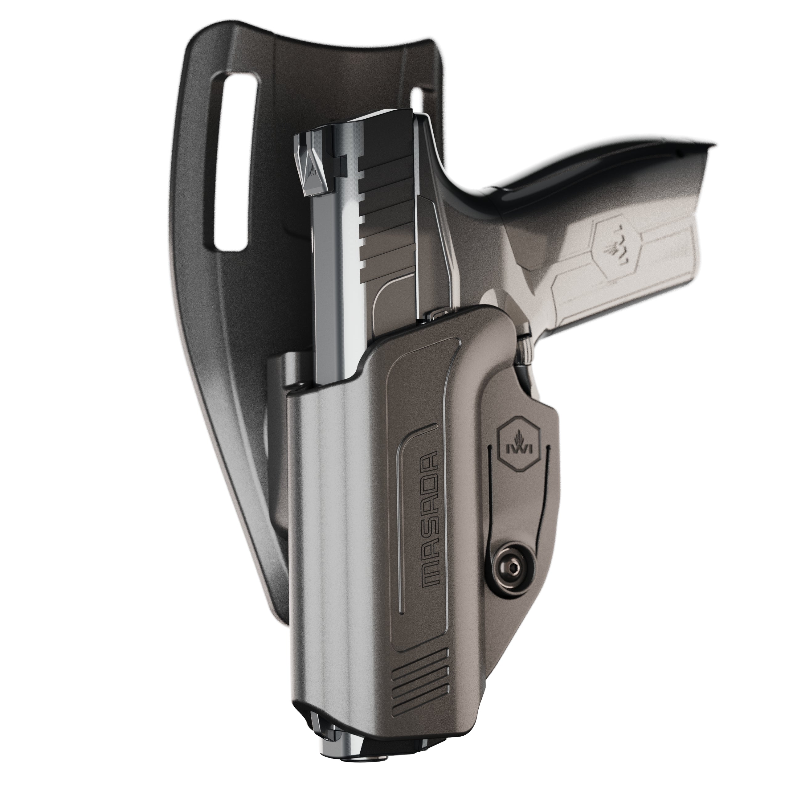 Highlights: Compatible with the IWI Masada pistol, designed for left handed shooters. Constructed from rugged, lightweight polymer Level I retention IWI Masada 9mm Holster, Fully adjustable retention & rotation. Ergonomic...