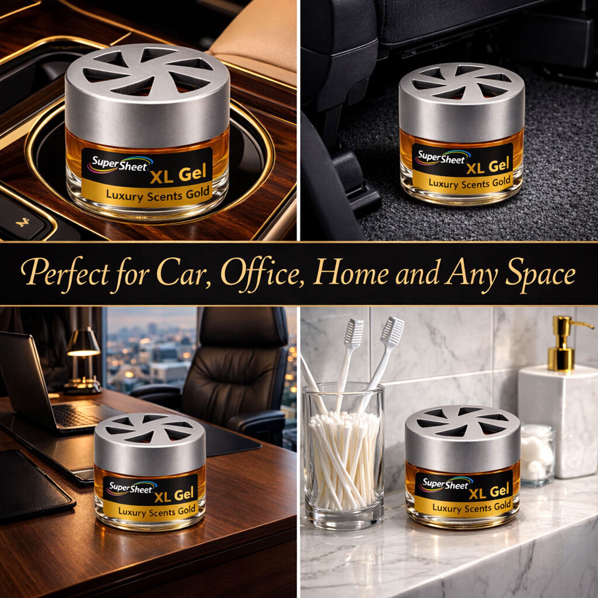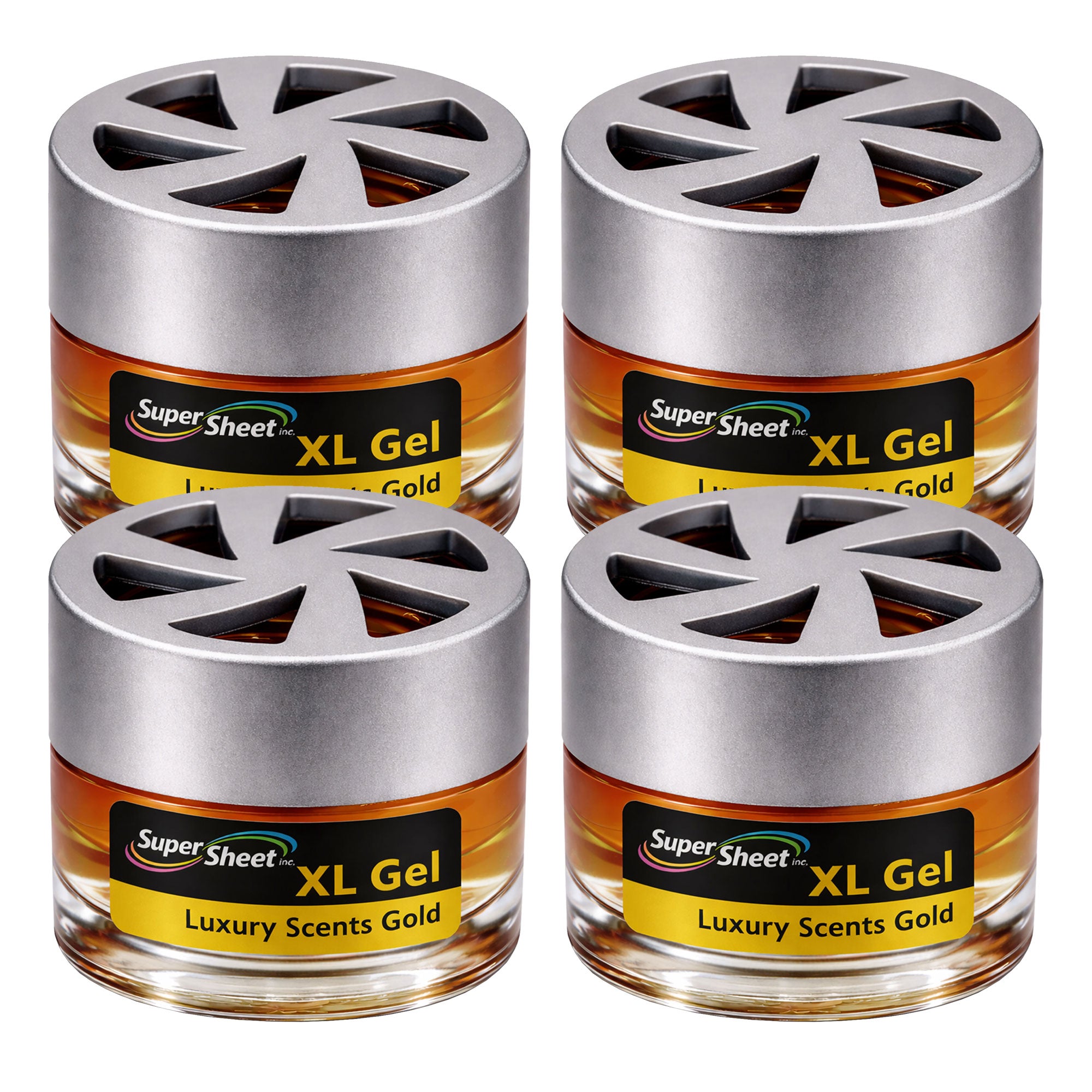 Upgrade your space with the Super Sheet XL Gel Air Freshener, designed in a premium heavy glass jar with a modern silver vented lid. Unlike typical cardboard or tin fresheners, this luxury gel diffuser delivers a smooth, consistent fragrance for up to 60 days. The balanced formula refreshes your car without being overpowering, making it ideal for daily driving, rideshare vehicles, or small spaces like offices and bathrooms. Simply remove the inner seal, replace the vented lid, and enjoy steady scent release. Made in the USA with domestic and foreign components and sealed for freshness.